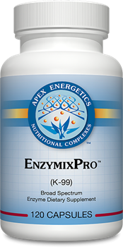 EnzymixPro incorporates a special proprietary blend of various enzymes, including brush border enzymes, that has been meticulously designed to support the gastrointestinal system.* This formula combines a broad spectrum of enzymes to help support the digestion of sugars, starches, fibers, proteins, and fats.* It also includes hydrochloric acid (HCI) for further digestive support.* A small size of EnymixPro™ (K99A), which contains 30 capsules, is also available.